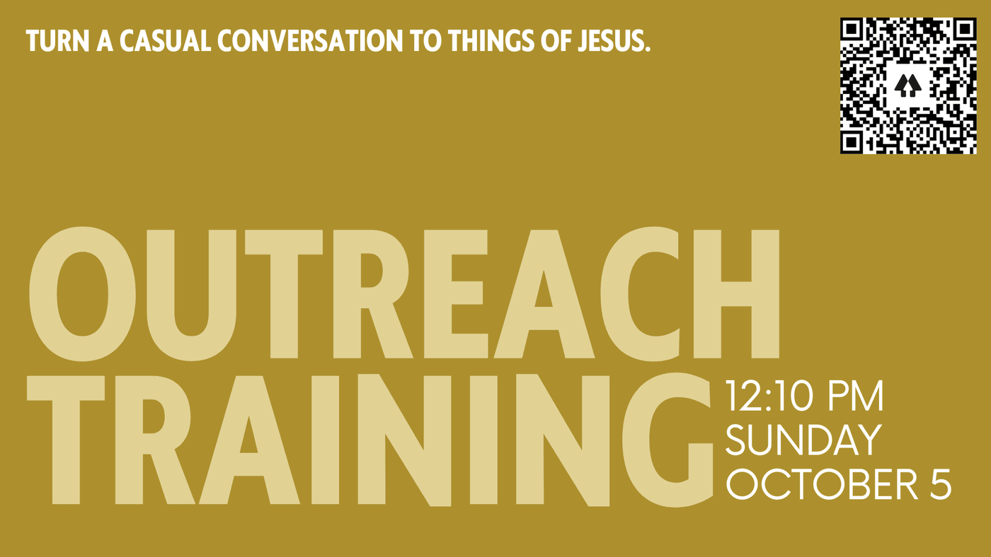 10/5 || 12:10 pm - Outreach Training If you're helping with the Halloween Community Outreach at Morro Bay Farmer's Market or the Community Yard Sale, this is an opportunity to gain confidence in talking to people about Jesus. Lunch will be served. Please register so we have a headcount for lunch.