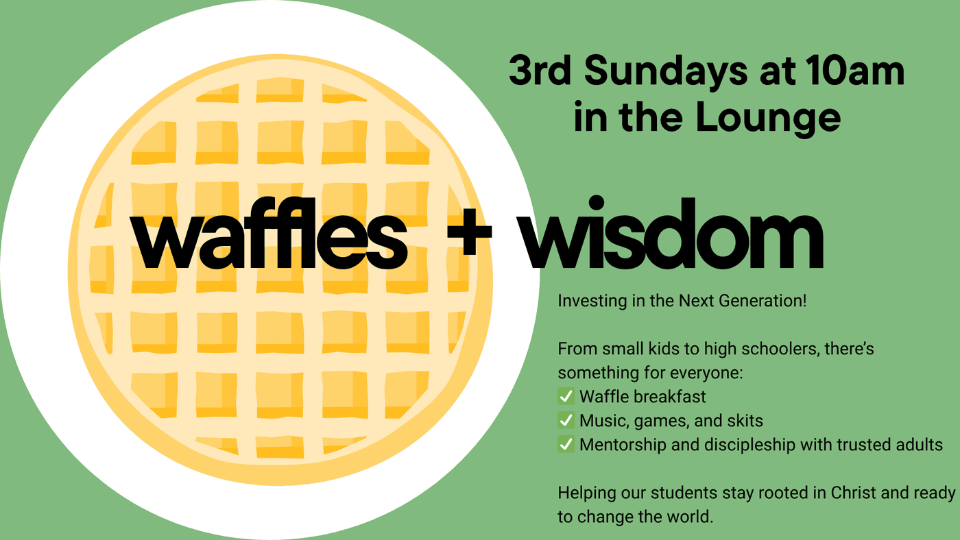 Waffles & Wisdom is a morning designed to help our young people (from toddlers to high schoolers) become firmly rooted in Christ. There’s something for everyone: ✅ Waffle breakfast ✅ Music, games, and skits ✅ Mentorship and discipleship with trusted adults. Our goal is simple: to model what it looks like to follow Jesus so that our kids are equipped to reach the world. And the best news, it will be happening monthly on the 3rd Sunday.