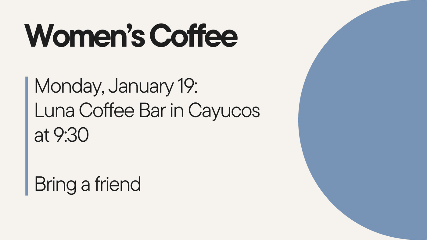 1/19 (9:30am) - Women's Coffee at Luna Coffee Bar in Cayucos.